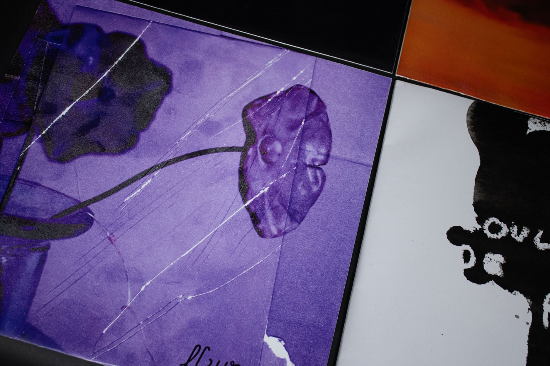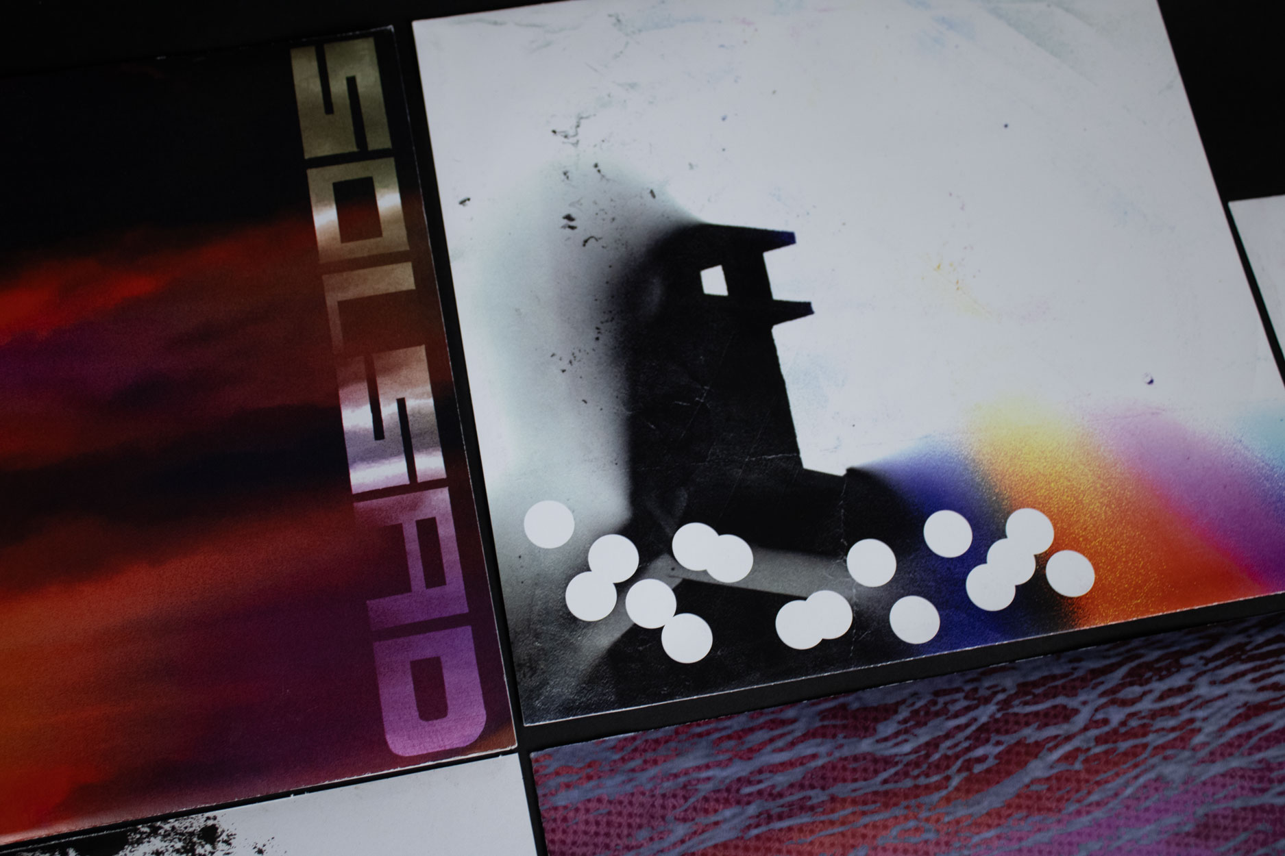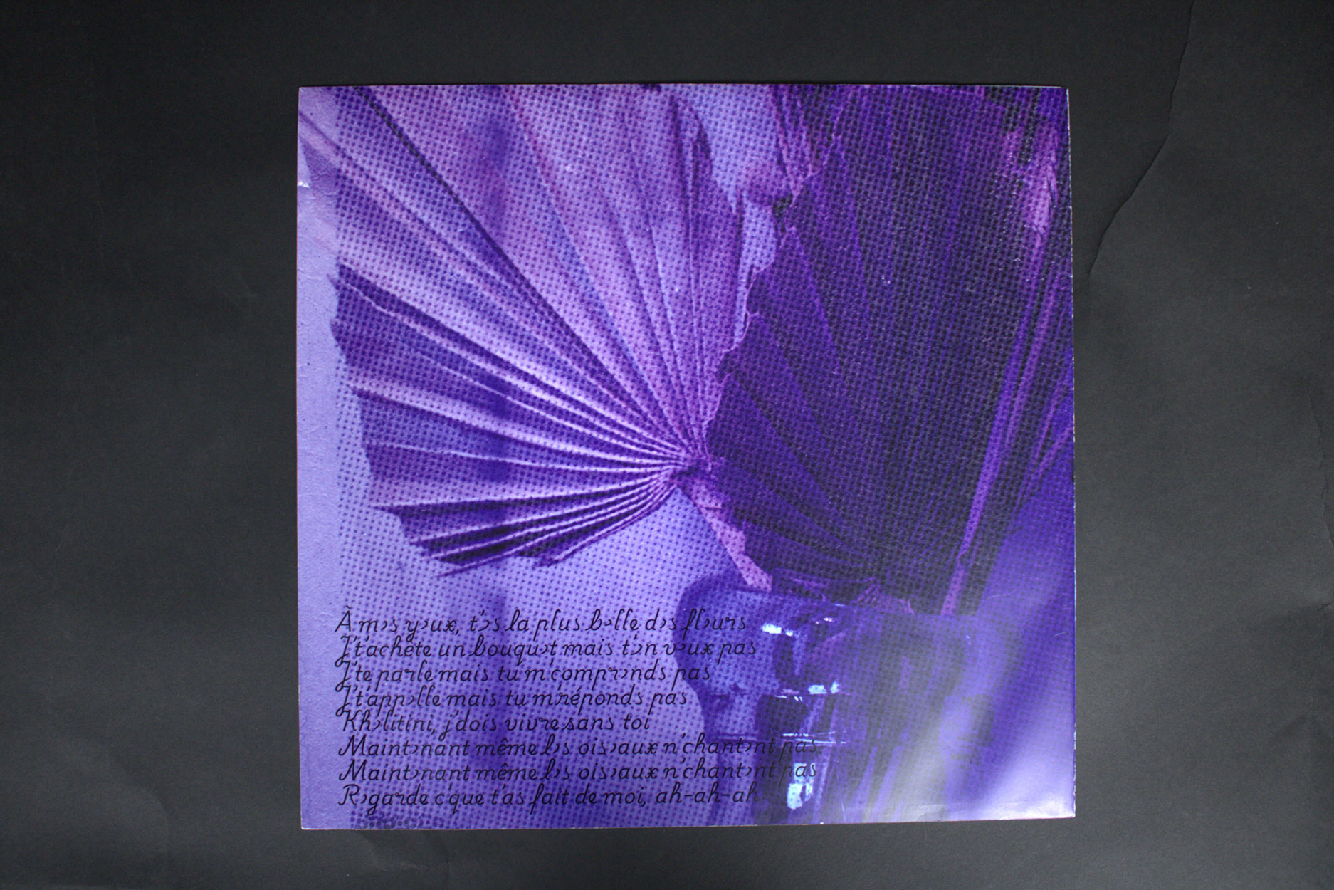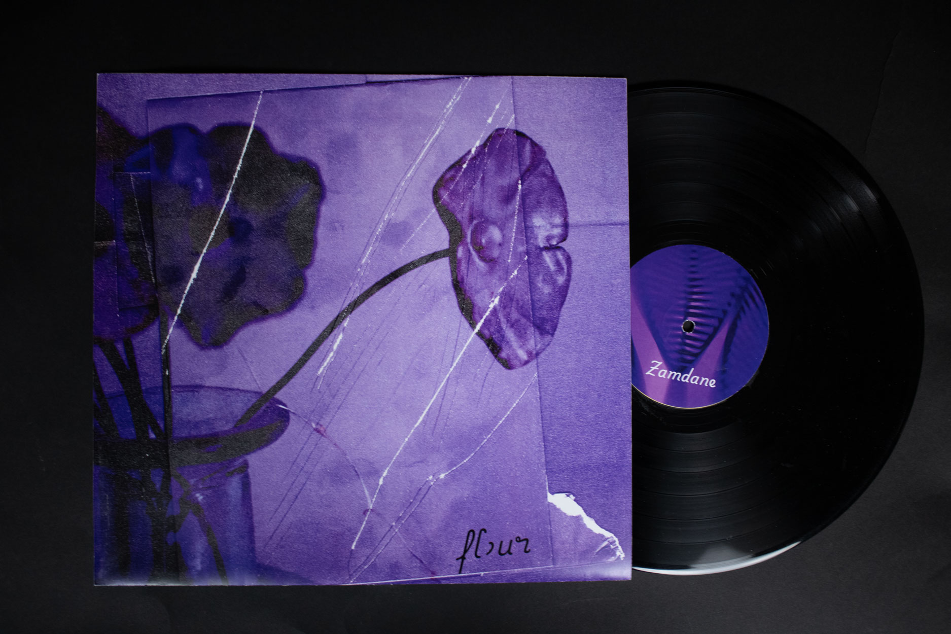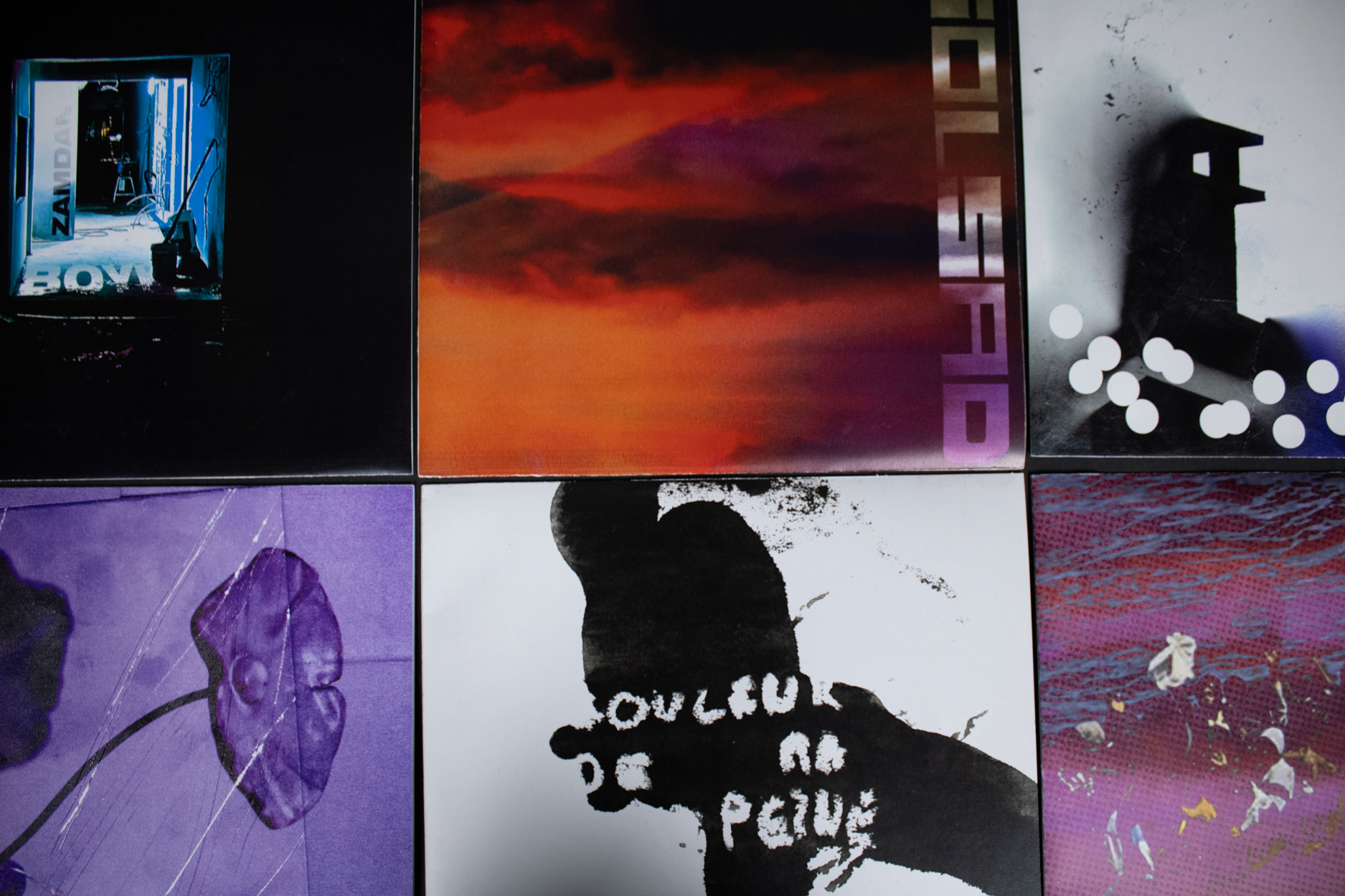 Ce projet est un ensemble de pochettes de vinyles, regroupés dans l'édition montrée en fin de page. Je suis parti de la discographie de l'artiste Zamdane, et j'ai créé des pochettes fictives en réfléchissant à ce qu'il représentait pour moi.