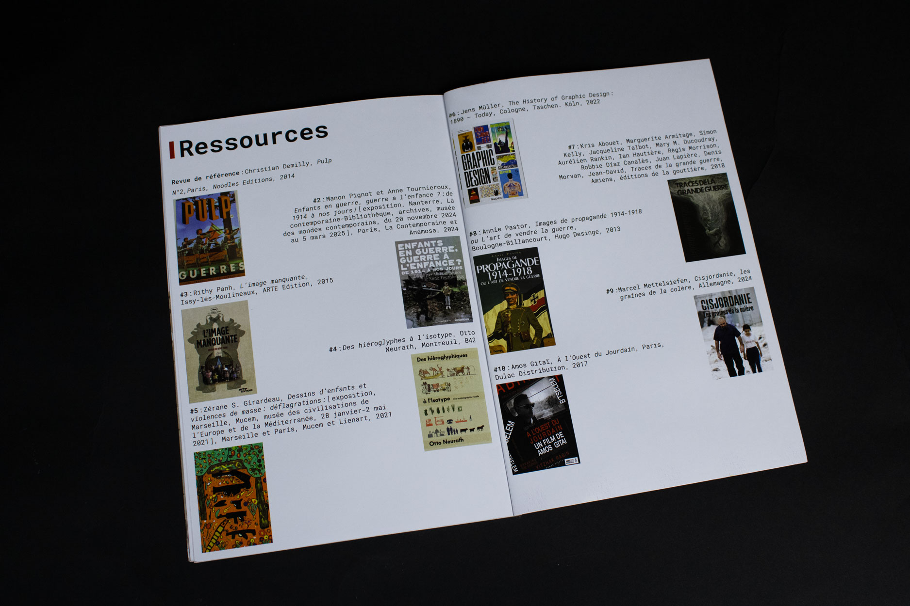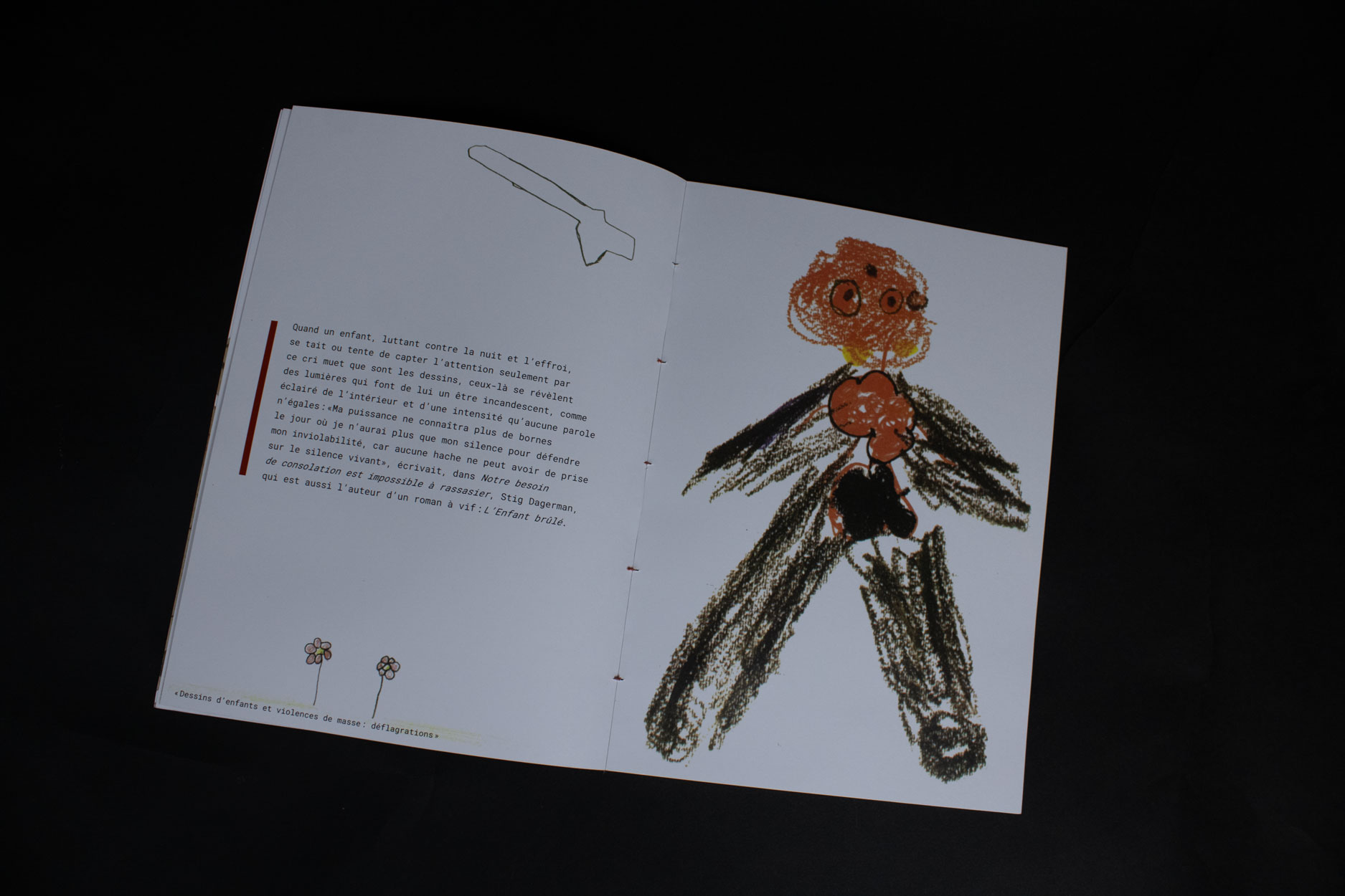 Pour ma part, j'ai choisi de travailler sur le lien entre la guerre et les enfants, et notamment les conséquences de vivre une enfance en période de conflit. On retrouve donc ce mélange de naïveté entre ce qui fait l'enfance, comme les dessins, et ce qu'ils représente. Ces choses représentées ne devraient pas croiser le chemin de l'enfance, ce qui est malheureusement le cas depuis toujours.